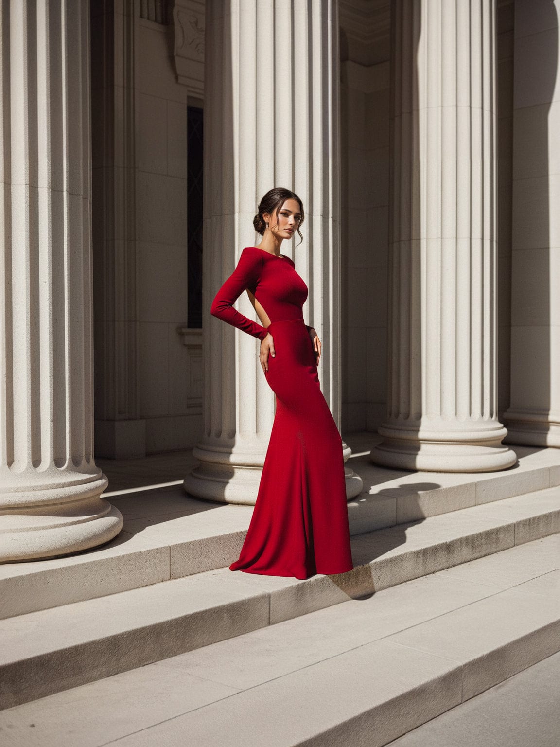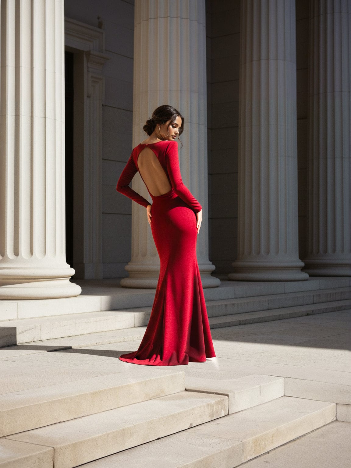 CHLOE Czerwona Długa Sukienka z Rozcięciem i Odkrytymi Plecami