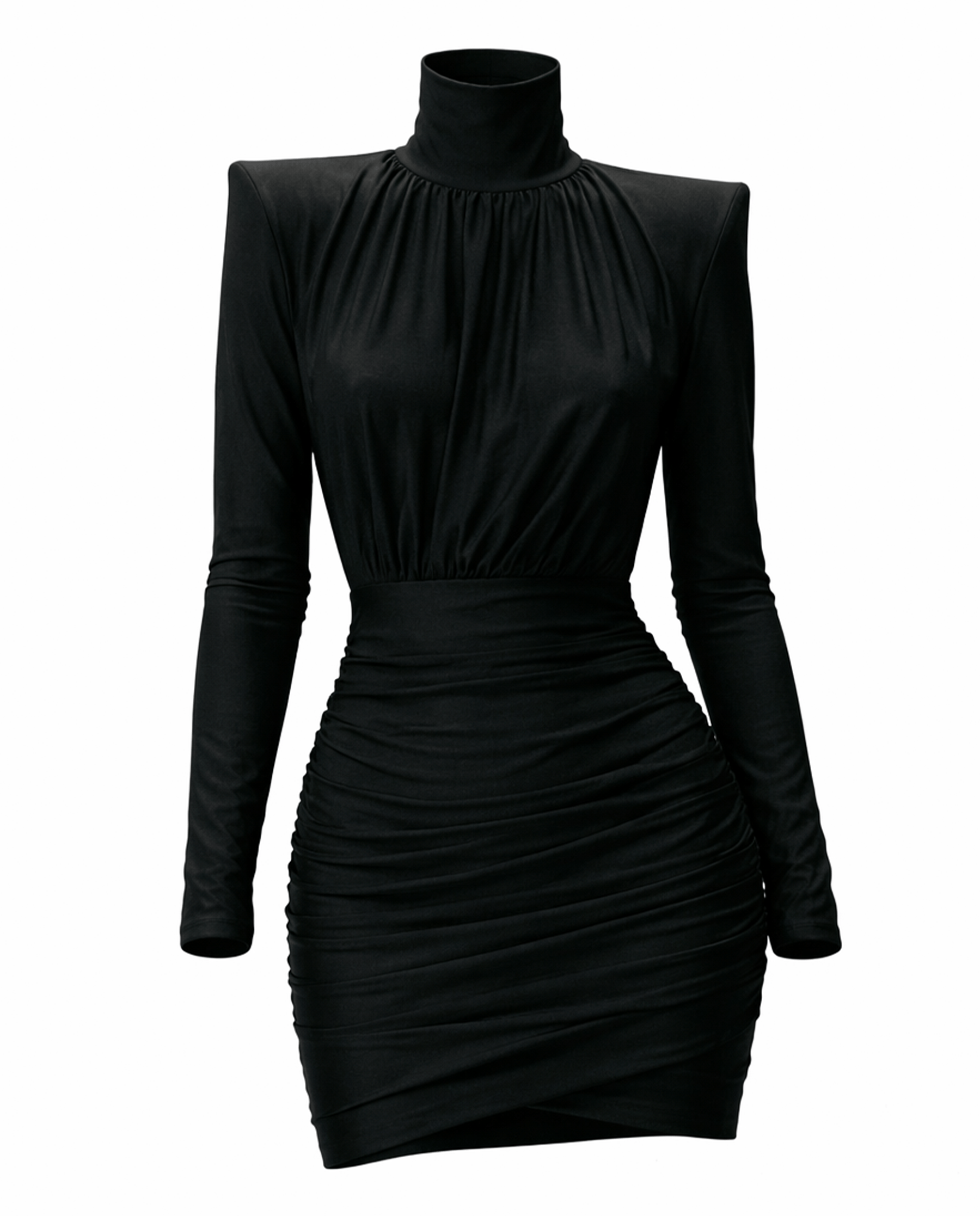 Sukienka KARA to odważne połączenie elegancji i nowoczesnego designu. Drapowana góra z wysoką stójką pięknie układa się na sylwetce, tworząc efekt miękkiej, luksusowej objętości. Mocno zarysowane ramiona z poduszkami nadają sukience wyrazisty charakter i wprowadzają modowy „power look”.
